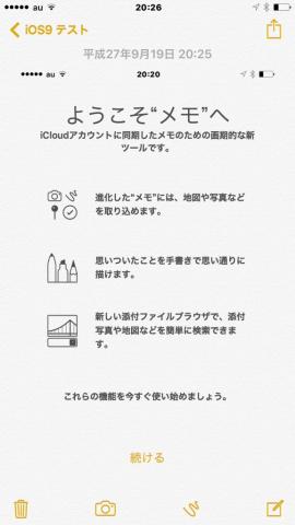 iOS9のHPでは、メモについての機能が良いらしいということで使ってみたいと思います。