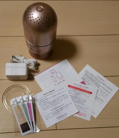 本体・電源アダプター・マット・ソリューション5ml×3・保証書と説明書等