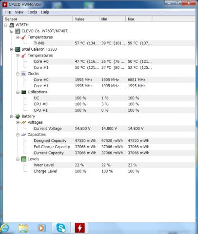 CPUはCeleron T3300で、元々発熱は少ないものです。