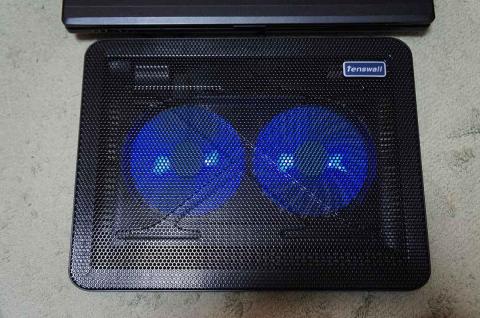 足を立てずに設置したところです。足を立てると、冷却性能は上がりますが、タイピングがしにくくなるので、立てずに使ってます。これについては、慣れてくれば、タイピングの弊害にはならないでしょう。