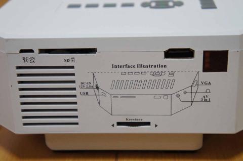 背面には、SDスロット、HDMI、歪曲調整、リモコン受光部があります。