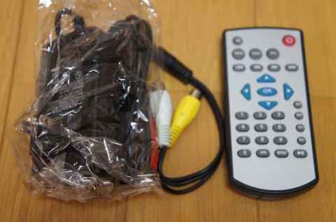 電源アダプタ、オーディオケーブル、リモコンが付属しています。