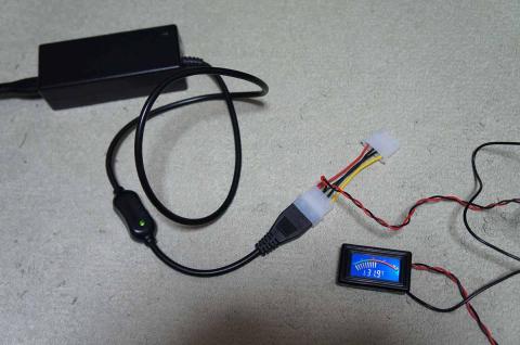 昔使っていた外付けハードディスクキットの電源アダプタを使用しました。こういうものがなければ、パソコンの電源から引き出す方法があります。
