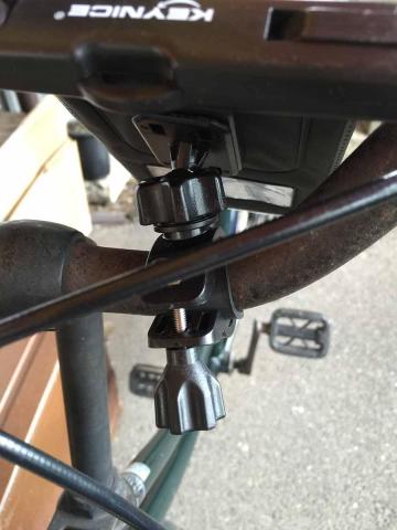 マウントキットを使い、自転車のハンドルに取り付けてみました。