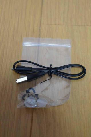 充電ケーブルと、イヤーパッドが付属しています。このイヤーパッドですが、しっかりと耳の中に入れるのではなく、耳の入り口にセットするタイプになります。
