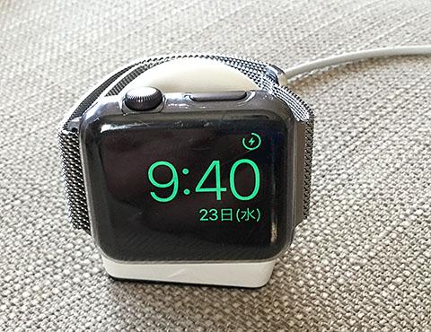 Apple Watch 2のNightStandモードにするには、デジタル・クラウンを上側にして横置きにする必要があります。