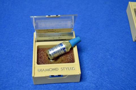 昔の販売価格ラベルが貼られています 両方ともダイヤモンドスタイラスだと言うことですが、針先のダイヤモンドチップは金属台に接着で付けたものと、ムク針と言ってカンチレバーにダイヤの針が刺さったものがあります 今回のものは接着の接合針のようです
