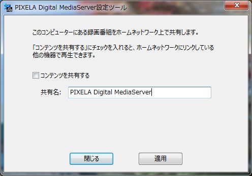 初期設定で設定したサーバー名「PIXELA Disital MediaServer」があります。
