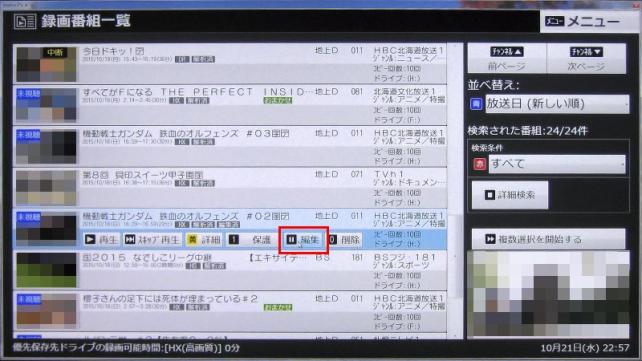 24分30秒ほどの番組ですが、ディスクフォーマット等を含めて約4分10秒ほどで完了、早!