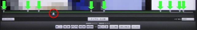 赤丸が現在位置でこの部分に「チャプター分割」スイッチをクリックしてチャプターを作ります。