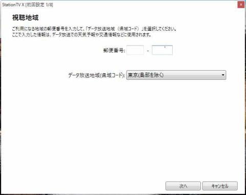 まずは視聴地域の設定から、近頃のTVと同じように郵便番号を入れます