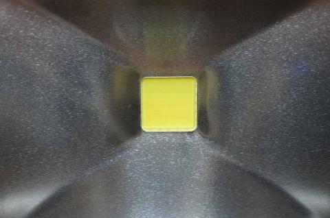3センチ四方のLED板と周囲にはアルミ製のリフレクター。