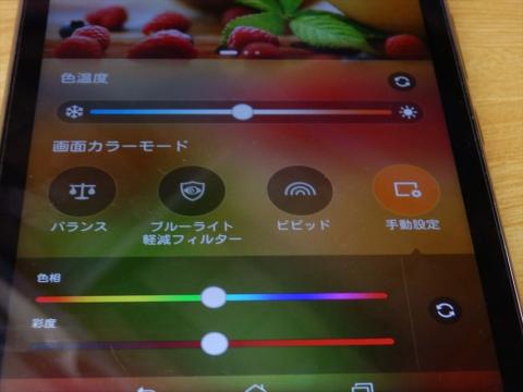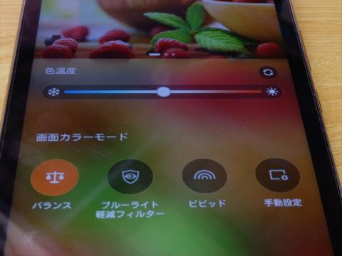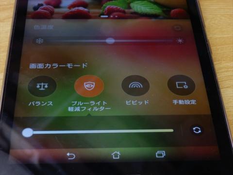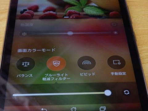 また、ブルーライトカットフィルタ機能も設定からワンタッチで起動します。