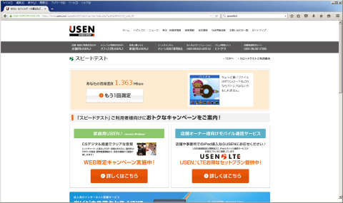 ここまでの設定はPCにUSB接続した状態で実施していますので、そのままUSBテザリングでスピード測定をしてみました。