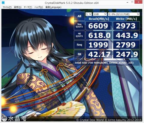 Intel SSD 750 Raid0 3台 インテルドライバ