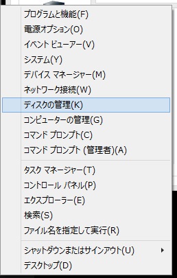 まず、スタートアイコンの、ディスクの管理を開きます。