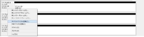 左側を右クリックします、ダイナミックディスクに変換を選びます