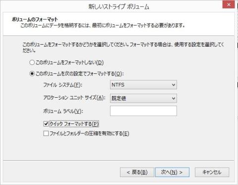奇特な人でもない限りは、クイックフォーマットにチェックを入れ次へ
