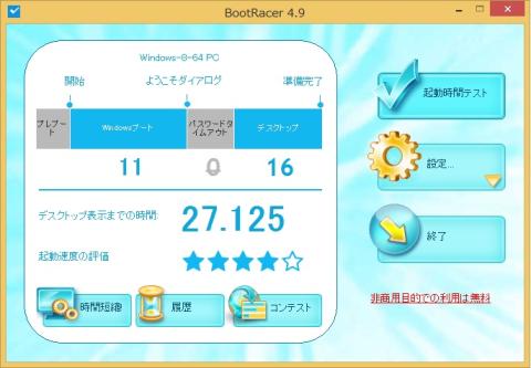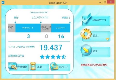 ブートレーサーを利用し、Windowsブートとデスクトップ安定までの速度が出せます。