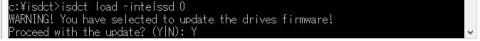 「isdct load -intelssd 0」(今回はID0のSSDをアップデートしてます)