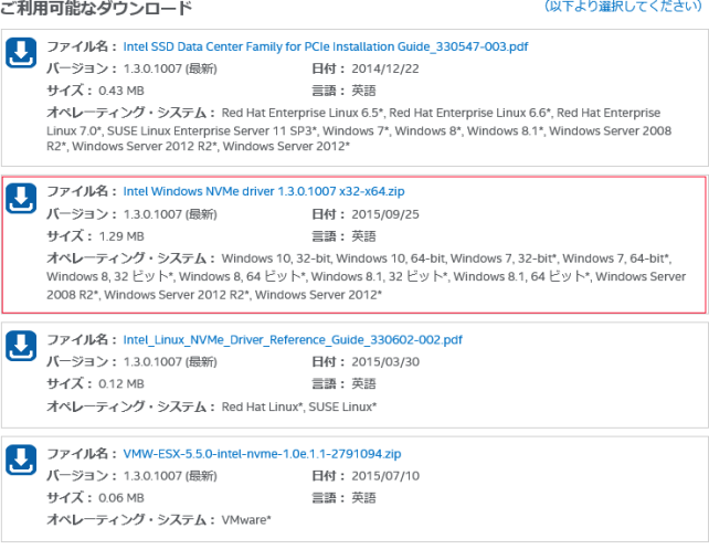 ■intel Solid-State Drive NVMe ドライバの導入