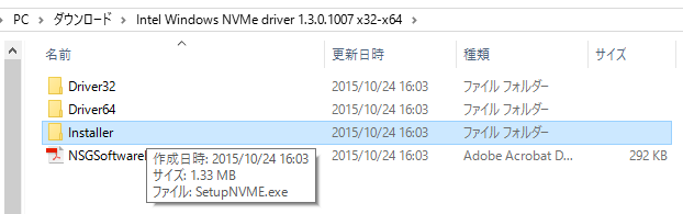 ダブルクリックで実行でNVMeドライバの導入は完了
