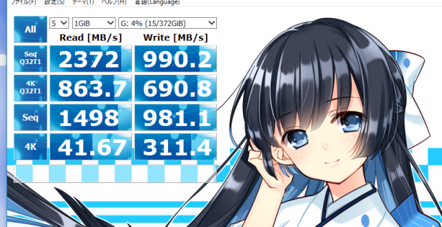 サブPCのBIOS(UEFI)ではNVMe非対応なので性能をフルに発揮出来ていませんが