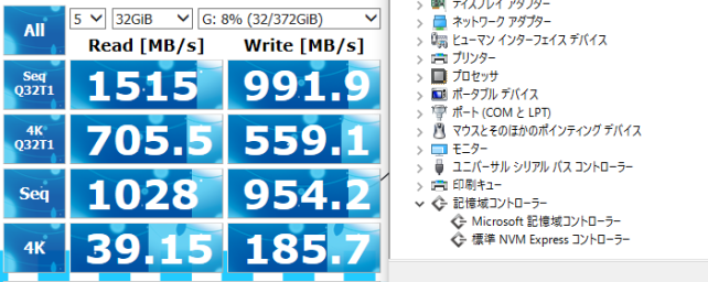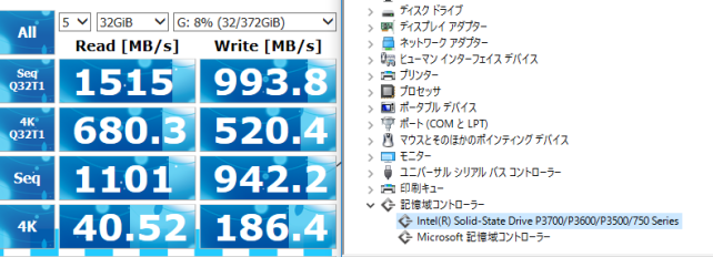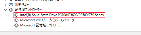 intel製ドライバ導入前ですがWindows10の環境ではMicrosoft標準NVMeドライバが