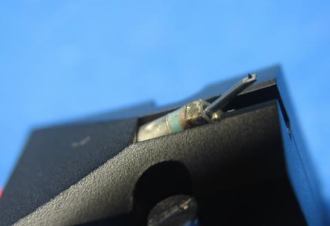 説明書では最初はブラシだけで清掃をしてくださいということです そのときレコード針の後ろから前にブラシをなでるように使うと言うことです 左右や前から後ろへのブラシ操作はよくないようです 次にブラシに1,2滴落として針をクリーニングします...