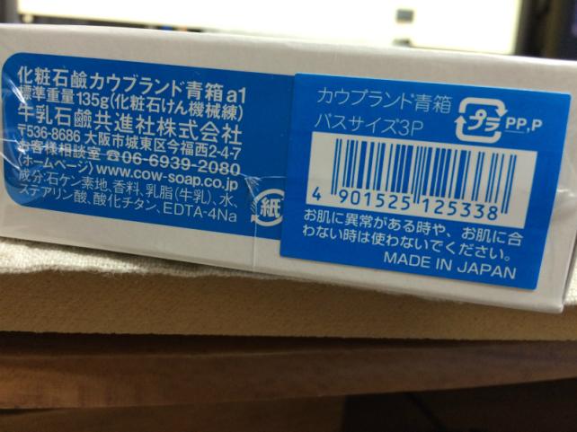 石鹸は牛乳石鹸の青箱バスサイズを使っています。洗い上がりもさっぱりしてます。