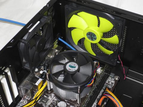 リアの9cmファンはIn-Win純正のファンが在庫切れなのか黒色のBeCool製9cmファンが搭載されていました。