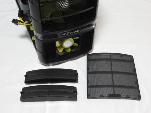 フロントの14cmファン部のカバーはブッシュ式で取り外し可能。掃除も簡単です!