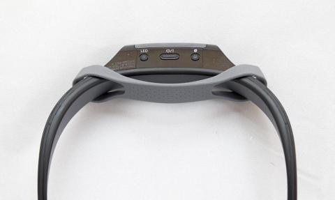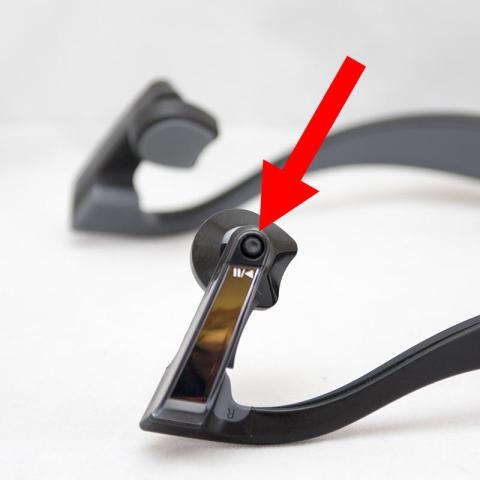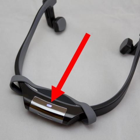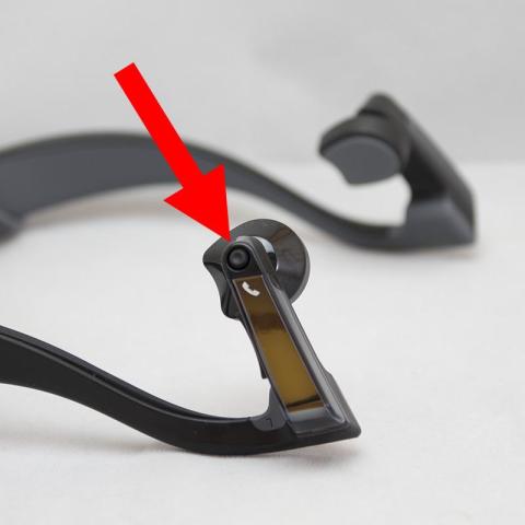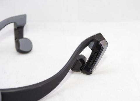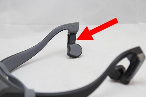 骨伝導式ですので、スピーカー部には孔は開いておらずシリコンの様な素材の面になっています。
