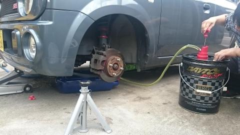 (レベルゲージボルトを開けていたので、空気が上から入りすごい勢いで抜けた)