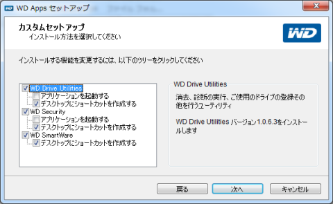 セキュリティソフトウェアが必要であれば「WD Security」を、自動バックアップが必要であれば「WD SmartWare」を、それぞれインストールすることで利用できるようになります。