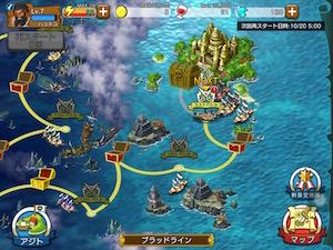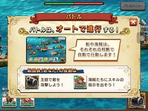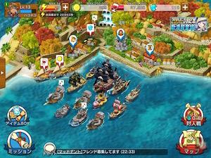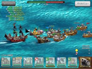 実際の画面ではSD化されたキャラが戦場をちょこまかと動いて可愛らしい感じ。海賊船もぐりぐり動くので結構マシンパワーは使ってそうです。古い端末だとかくかくに見えるかもしれませんね。