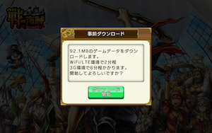 ゲームを始める際にアプリ自体のダウンロード(約20M)が終わった後、追加のダウンロードが92M+425M(チュートリアル終了後)があります。
