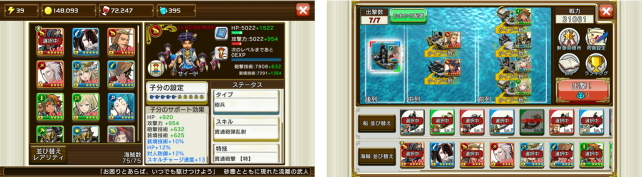 それぞれの船同士の相性や、海賊の属性との相性などがあり、クエストの敵海賊の出撃船の属性に対して有利になるように船を配置することもクエストに勝利するコツになります。