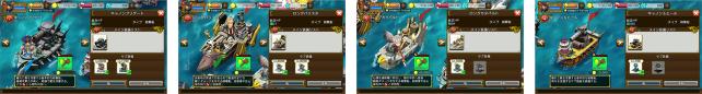 左から勇士の突撃船×2、策士の突撃船、指揮の突撃船となります。(現状私が持っている船のみ)