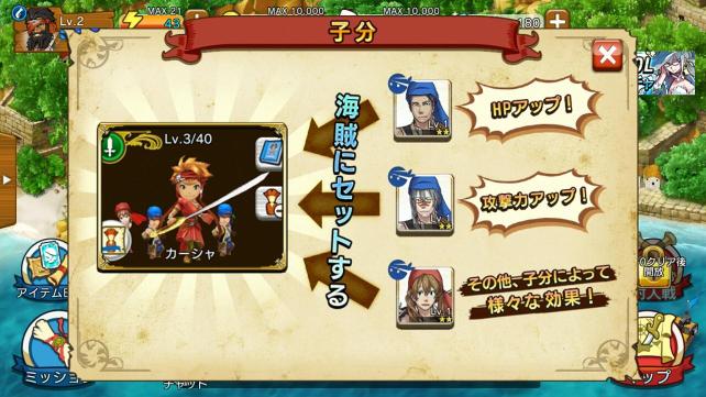 特に親分である海賊がレベルアップした後は発生しやすいので、要チェックです。