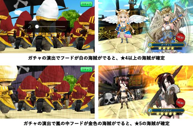 またガチャ時の演出で、出てくる海賊のレア度が確定するようです。