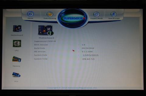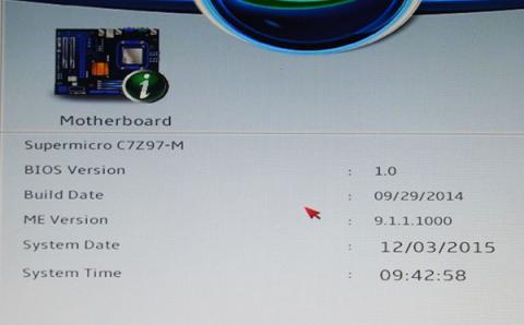 但しこの状態でもグラフィックボードを使えば画面表示してくれるのでUEFIバージョンの確認やDOS起動USBメモリを使用したUEFIのアップデートが可能。やはり2014年のR1.0が搭載されている。