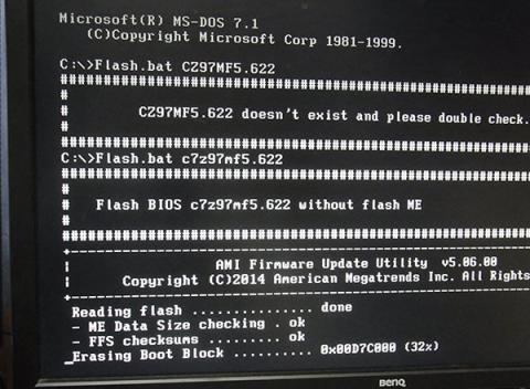 先ほどのSSに写っているMEのバージョンは9.1.1.1000。マザーボードのモデルによってUEFIのアップデートされてもMEがアップデートされないものがありこうなるようだ。案の定このC7Z97-Mもそのパターン。DOS画面にでかでかとwithout flash MEってかいてあったもんな。