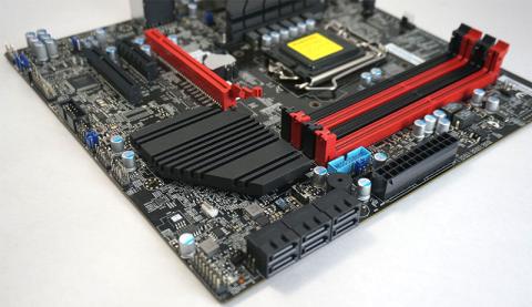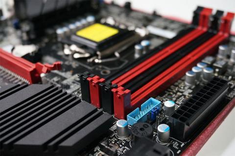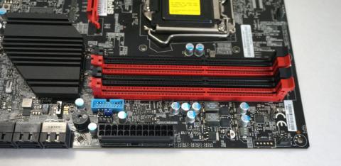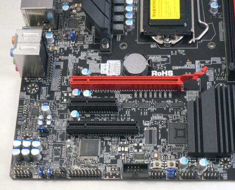 隣は赤と黒のコントラストが際立つメモリスロット。当然4スロット装備で、グラフィックボードとの干渉が少ない片ラッチ式。