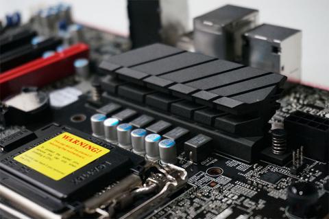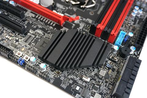 電源フェーズは6。電源周りのヒートシンクもシンプルな形状だがカットラインで個性を出している。ドラゴンやロゴの自己主張がステキな他社ゲーミングマザーとはまた違ったかっこよさだ。