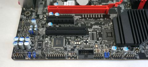じゃあサウンドカードだの他の拡張カードを挿そうとすると3番目のPCI Express 3.0 x8を使う事になるが…実はこの3番目のスロットは最上段のx16スロットと帯域を共用しているので例えx1のカードを挿しても最上段はx8動作になる。