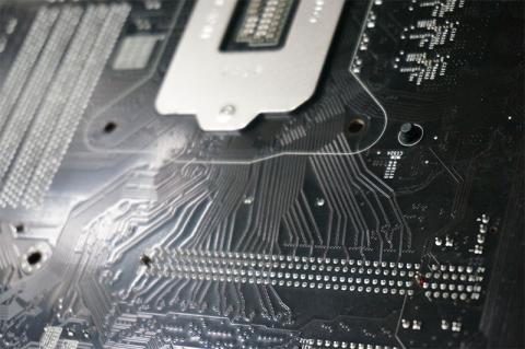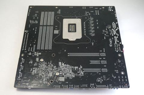 マザー背面は実にシンプル。ヒートシンクバックパネル等張り出しもないので大型クーラーのバックパネルも安心だ。