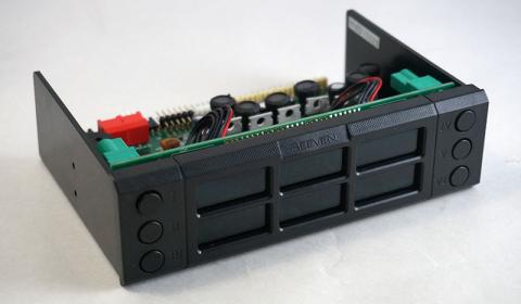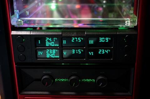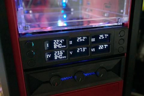 6chファンコンで、それぞれに回転数表記と温度センサーを備えた小型LCDを6個備えたデザインは独特で意外と無かったタイプ(まあ1個をフレームで仕切っているのだろうが)。