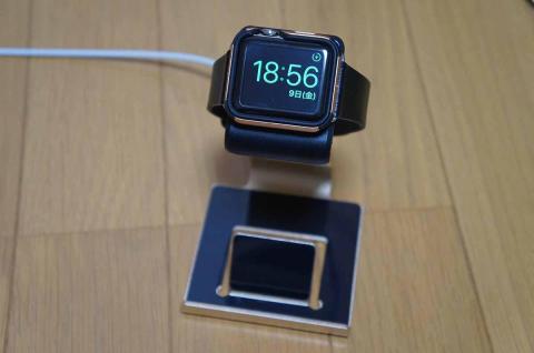 Apple Watch OS2.0からナイトスタンドモードが使えるようになりました。横向きに充電スタンドに置くと、ナイトスタンドのように、現在時刻を横向きに表示してくれます。