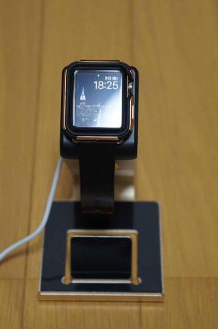 Apple Watch無印ステンレスケースをセットしてみました。磁気端子が少し引っ込んでいる分、Apple Watchがスタンドにしっかり固定されているように感じます。